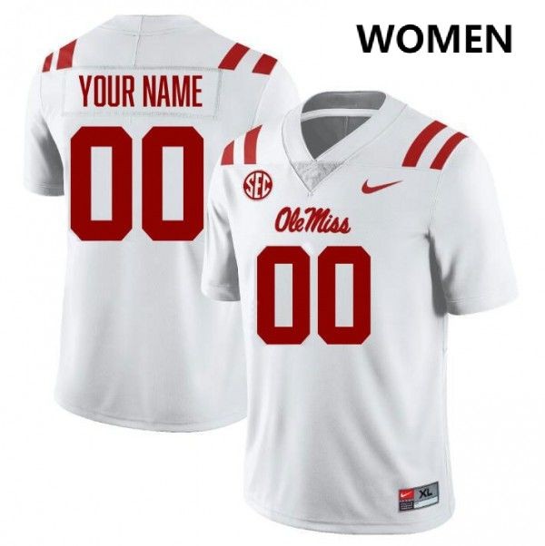 #00 Custom Mississippi White/Red Women Jerseys Limited College Football 915919-310