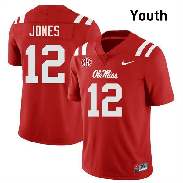 • #12 Andrew Jones University of Mississippi Red Youth Jersey Replica College Football