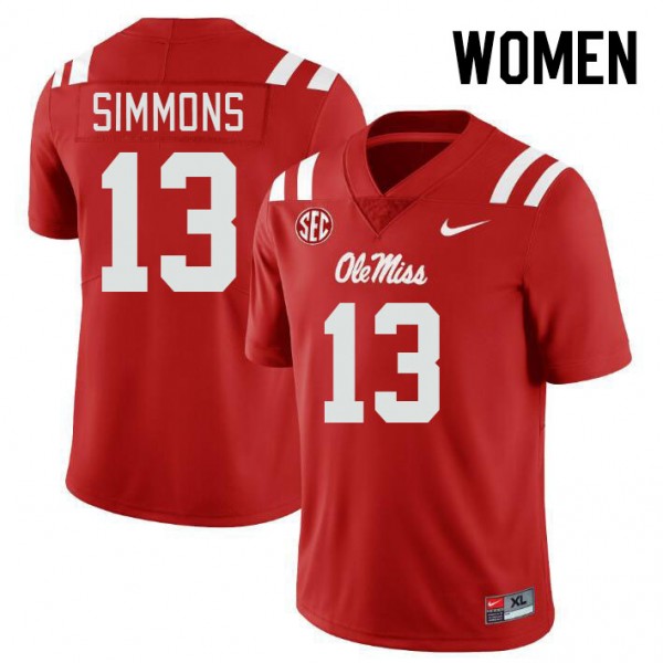 #13 Austin Simmons Ole Miss Red Women Jerseys Embroidery College Football 277635-350