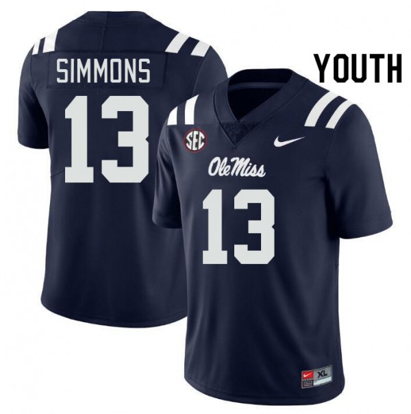 • #13 Austin Simmons Ole Mississippi Navy Youth Jerseys Official College Football