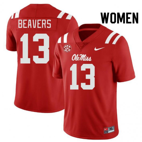 • #13 Cedrick Beavers Ole Miss Red Womens Jerseys High School College Football