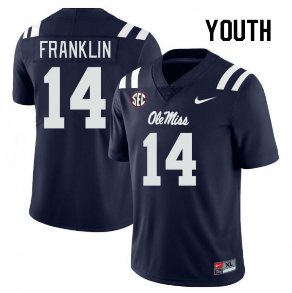 • #14 Kam Franklin Ole Mississippi Rebels Navy Youth Jerseys Stitched College Football