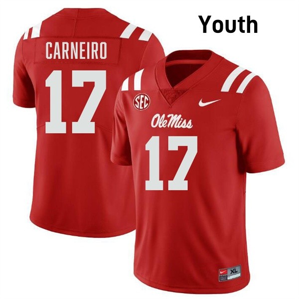 • #17 Lucas Carneiro Ole Miss Red Youth Jersey Game College Football