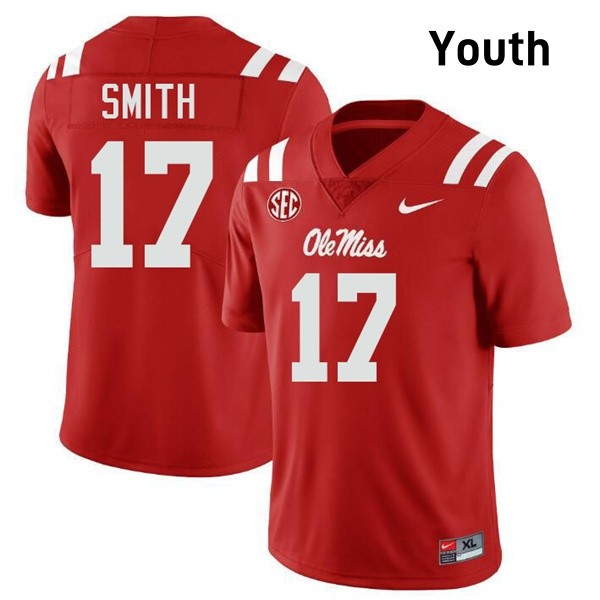 • #17 Maealiuaki Smith Ole Miss Rebels Red Youth Jersey NCAA College Football
