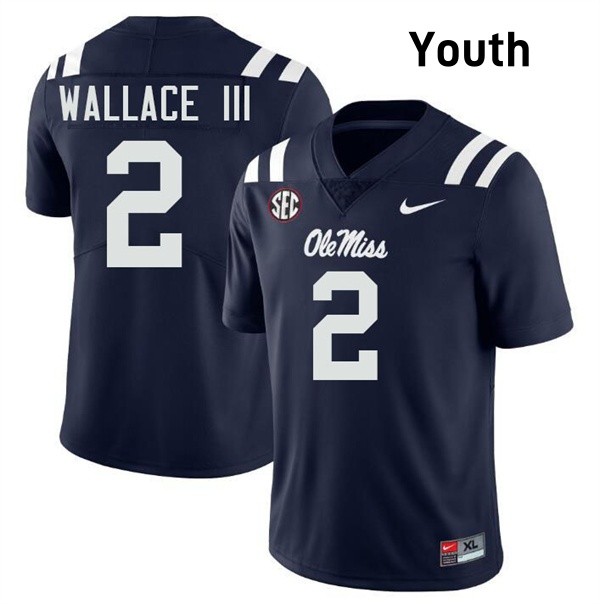 • #2 Harrison Wallace III Ole Miss Navy Youth Jerseys Alumni College Football