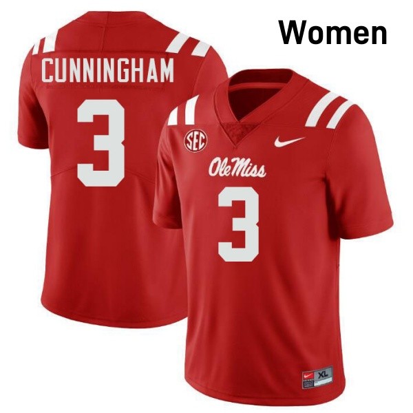 #3 Caleb Cunningham Mississippi Red Womens Jerseys Embroidery College Football 370208-123