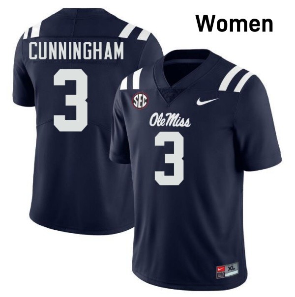 #3 Caleb Cunningham Ole Miss Rebels Navy Women's Jersey University College Football 564816-365