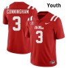 #3 Caleb Cunningham Ole Mississippi Red Youth Jerseys Stitched College Football 307839-918