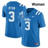 • #3 Sage Ryan Ole Mississippi Powder Blue Womens Jersey Replica College Football