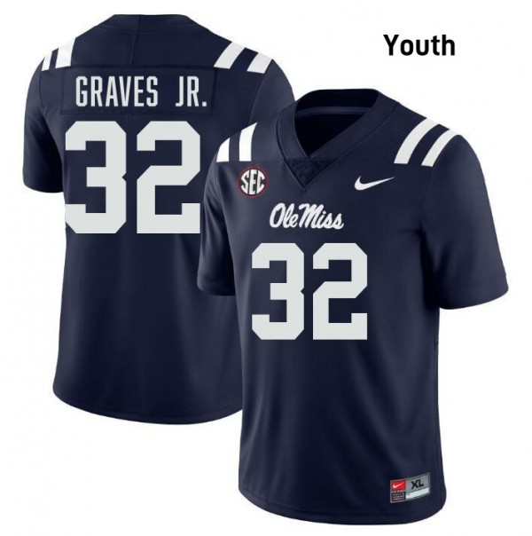 • #32 Chris Graves Jr. Ole Miss Navy Youth Jerseys Limited College Football