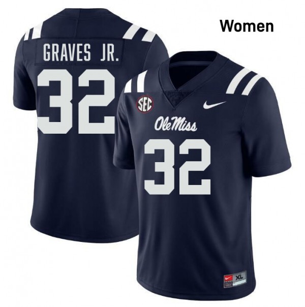 • #32 Chris Graves Jr. Ole Mississippi Navy Women Jerseys Limited College Football