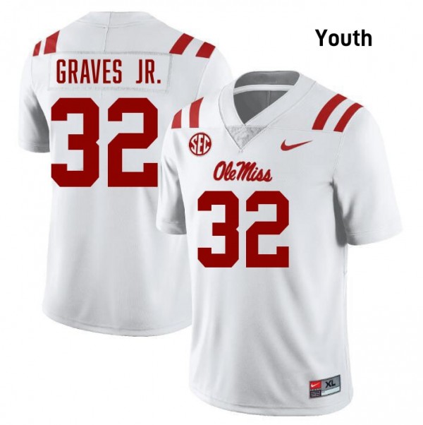 • #32 Chris Graves Jr. Rebels White Youth Jersey Official College Football