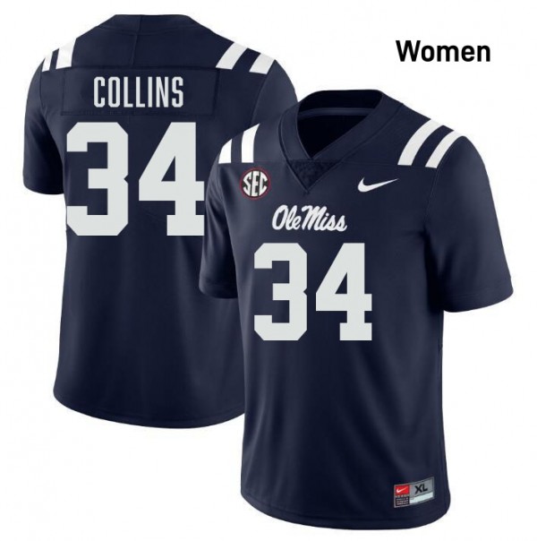 • #34 Raymond Collins Ole Mississippi Navy Womens Jerseys 2025 College Football
