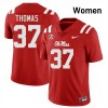 • #37 Cortez Thomas Ole Miss Rebels Red Womens Jersey Game College Football