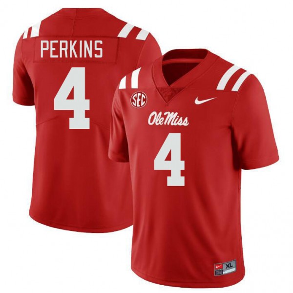 • #4 Suntarine Perkins Rebels Red Mens Jersey Replica College Football