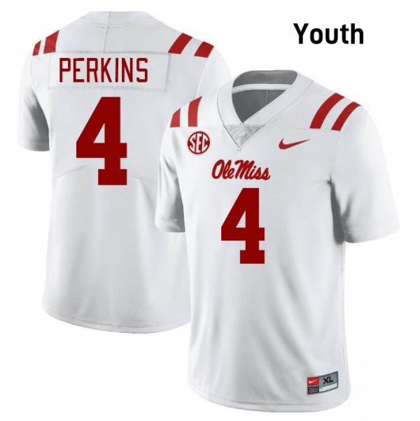 #4 Suntarine Perkins Rebels White Youth Jersey Official College Football 319632-996