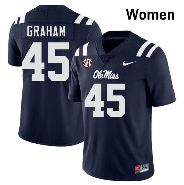• #45 Talib Graham University of Mississippi Navy Women Jersey 2025 College Football