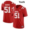 #51 Zxavian Harris Mississippi Red Youth Jersey Replica College Football 928522-202