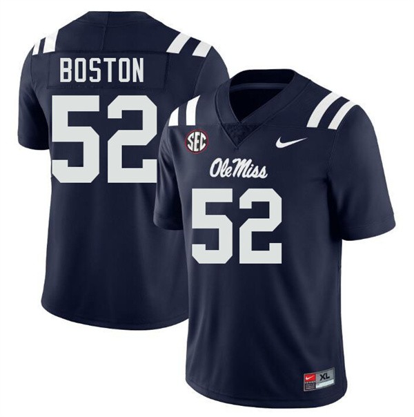 Support your favorite team with this authentic #52 Kenneth Boston Mississippi Navy Men Jerseys 2025 College Football 321302-932! Featuring the #52, this jersey is perfect for any Rebels fan. Order now and show off your team pride!