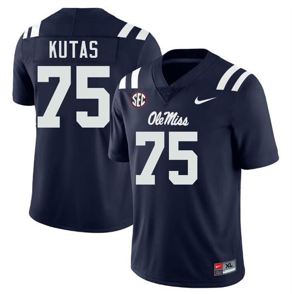 #75 Patrick Kutas Ole Miss Rebels Navy Men Jersey High School College Football 315626-553