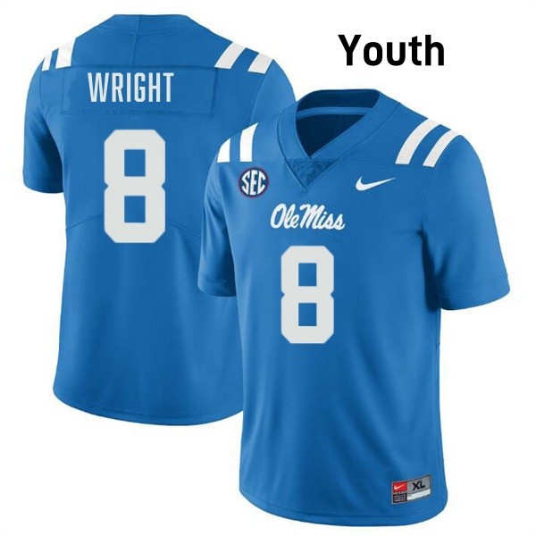 • #8 Dae'Quan Wright Rebels Powder Blue Youth Jersey University College Football