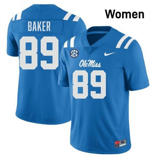 • #89 Mike Baker Mississippi Powder Blue Womens Jersey Stitched College Football