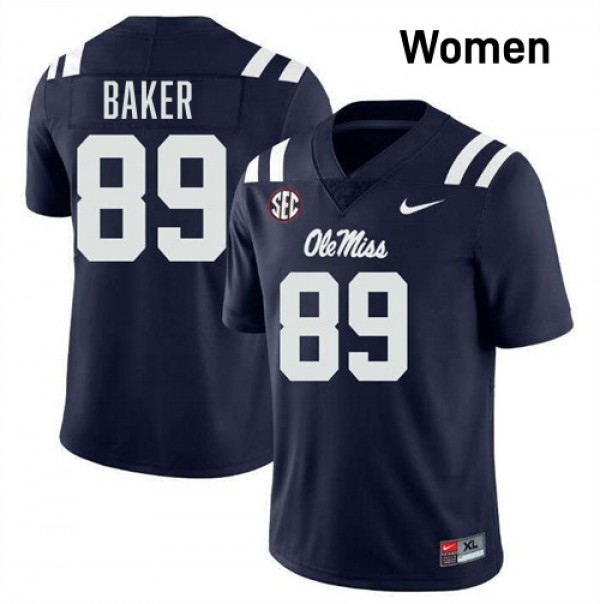• #89 Mike Baker Ole Miss Navy Womens Jersey Game College Football