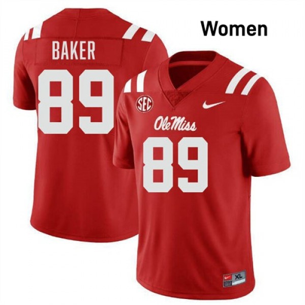 • #89 Mike Baker Rebels Red Womens Jerseys Stitched College Football