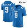 • #9 Ricky Fletcher Ole Miss Powder Blue Womens Jerseys Embroidery College Football