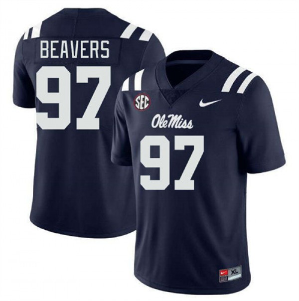 • #97 Kamron Beavers Ole Mississippi Navy Mens Jerseys University College Football