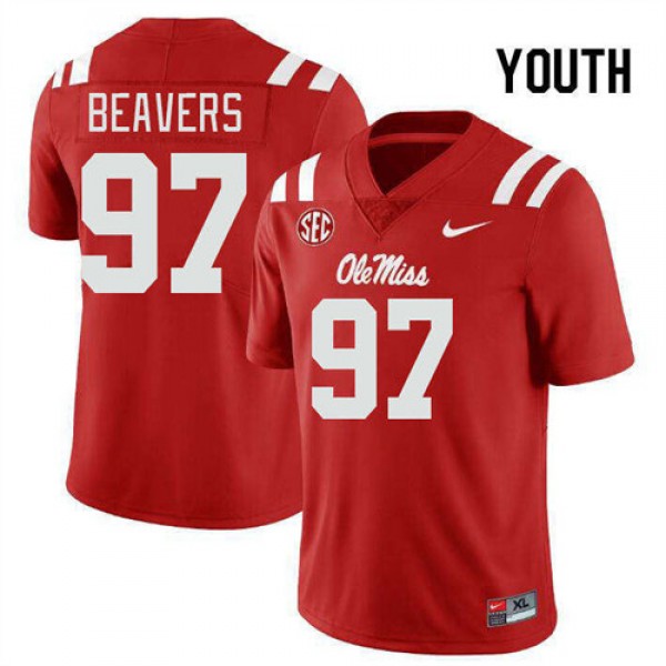 • #97 Kamron Beavers Ole Mississippi Rebels Red Youth Jerseys University College Football